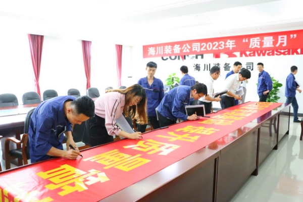 “一筆一劃簽下的不僅是自己的姓名,還有對(duì)質(zhì)量的承諾?!眻D為梁平海螺、全椒海螺、海川裝備廣大員工在“質(zhì)量月”橫幅上簽名,發(fā)出“人人關(guān)心質(zhì)量、人人重視質(zhì)量、人人追求質(zhì)量”的倡議。