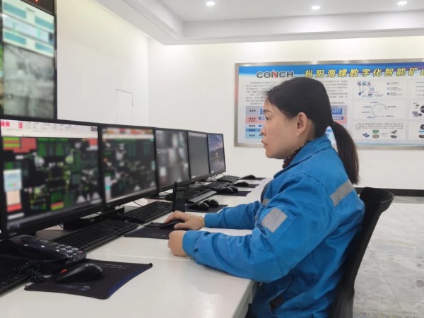 樅陽海螺礦山局控操作工胡玉貞正在進行礦車開采智能把控工作,她說:“數字化智能礦山系統指揮礦車,就像指揮家在指揮樂隊,工友們在礦場辛勤作業,我用智能化系統為他們提供精準的開采指導,確保每一步都高效有序。”