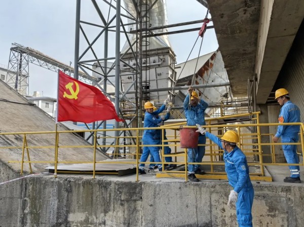 雙峰海螺黨員突擊隊清理篦冷機斜拉鏈地坑積料。他們說:“保持決戰狀態,沖刺目標任務,讓鮮紅的黨旗在一線高高飄揚。”