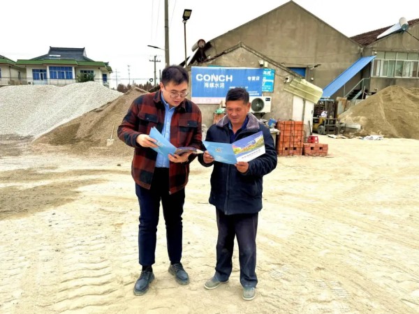 太倉海螺銷售業務員戴景龍正在向客戶介紹太倉海螺袋裝水泥真偽辨別方法,他說:“客戶的需求就是我們的目標,客戶的肯定就是最好的業績。”
