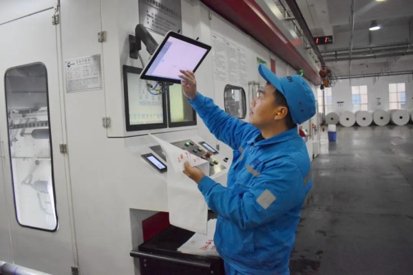 廣元塑品印刷機主操馬強正在核對生產數據,他說:“這是生產源數據,每一個數字都關乎著產品的質量與生產流程的精準性,馬虎不得。”