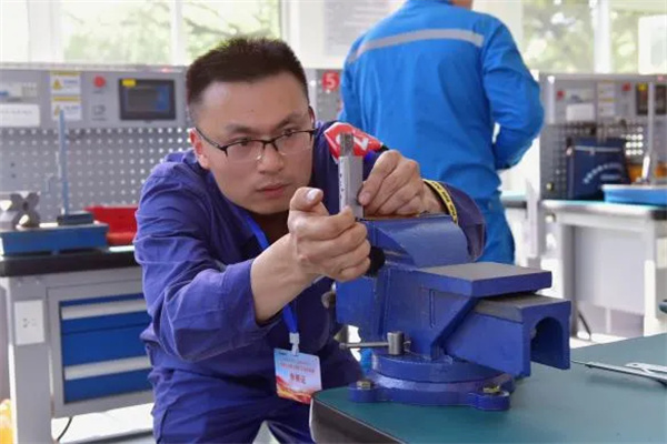 鉗工選手不斷調整著模具擺放位置,認真進行數據測量,完成對板的劃線、制作、裝配與檢驗。